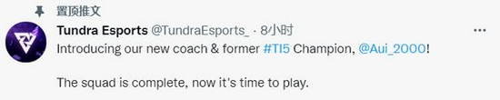 Tundra宣布TI5冠军选手Aui_2000将以教练身份加入队伍,共同征战新赛季。目前Tundra已经人员齐整,准备好征战马上到来的新的DPC赛事了。