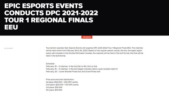 独联体赛区DPC联赛主办方Epic电竞近日宣布了独联体赛区季后赛的具体时间和赛制。比赛将于2月18日至20日在线上举行。根据联赛的结果,独联体赛区的前四支战队将进行双败淘汰赛,除总决赛为bo5外,其余比赛均为bo3。