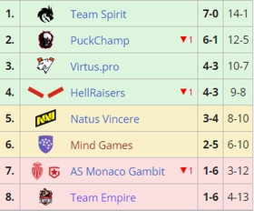 最终DPC独联体赛区S级联赛第一赛季的排名如下: