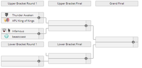 南美赛区近日公布了季后赛赛程,根据首轮赛区第一对阵赛区第四,赛区第二对阵赛区第三的原则,因此2月11日的首轮比赛将由Thunder对战APUKoK,Infamous对战bc。然后以双败淘汰赛的赛制决出最终的总冠军。决赛为BO5,其余比赛均为BO3。具体赛程安排如下: