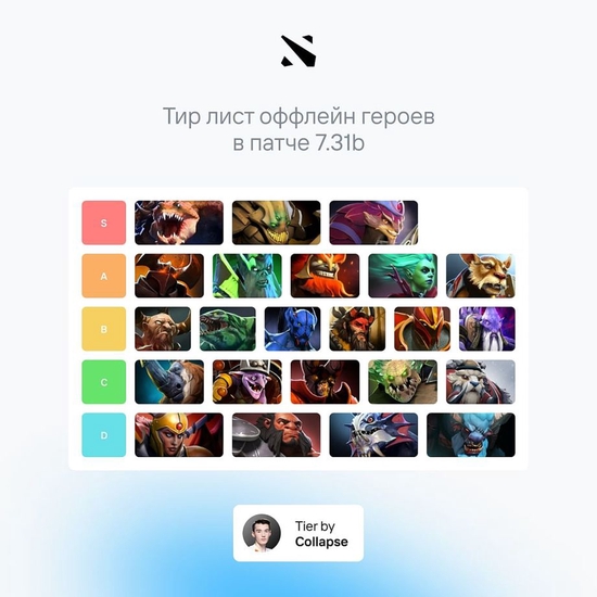 Team Spirit战队的三号位Collapse近期在社区网站上分享了他心中7.31b版本最佳三号位英雄名单。