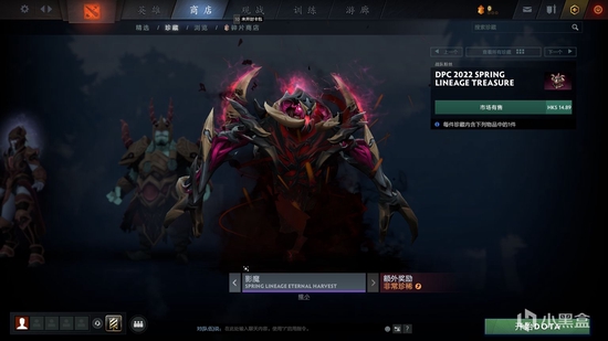 3月31日:DPC梦幻挑战奖励珍藏 2022-03-31 23:35 新浪游戏 0 DPC梦幻挑战奖励珍藏已经上线,内含7个普通奖励套装和1个非常珍稀的影魔套装。其中影魔套装为一直以来较受欢迎的获命永恒套装重置改色而来。在梦幻挑战中每获得4级梦幻等级就可以领取一个珍藏宝箱。 宝箱套装浏览: 非常珍稀:新春传世获命永恒套装