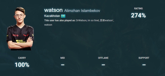 此前Watson作为天才少年被Dendi相中,之后B8遭遇了堪称史上最惨的27连败,Watson便从B8跳槽至HellRaisers。此后他在东欧DPC联赛第一赛季中大放异彩,甚至在季后赛第一轮中率队破了Team Spirit的DPC不败金身从而名声大噪。但由于近期的乌克兰局势问题,HR战队宣布无限期停止工作,旗下Dota2选手被允许以其它战队名义参加比赛。