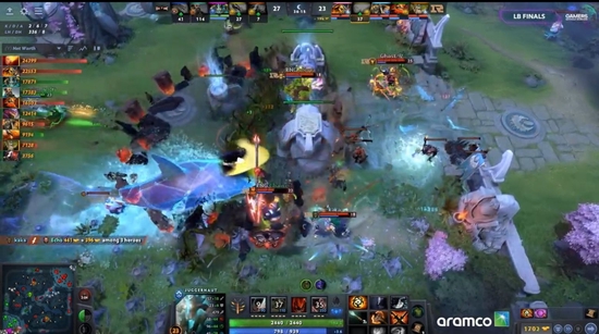 37分钟EHOME三核阵亡不能买活,最终打出了GG。