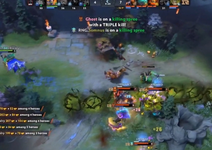 28分钟,RNG下路推进,蓝猫先手暗影萨满被大树和敌法师联手反杀,没有了蓝猫切后排,BOOM没能越过玛尔斯的屏障,酒仙、亚巴顿也被击杀。RNG下转中拆掉了天辉中路高地,经济领先达到23K。
