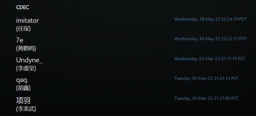 以下为Fusion战队和CDEC战队的人员名单: