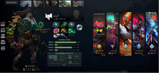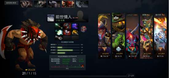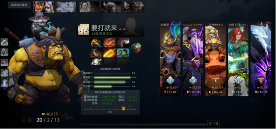 昨日选手Wishing(游戏昵称:要打就来) 使用炼金术师,平均每分钟拿下1009的金钱,成为昨日单场GPM之最。