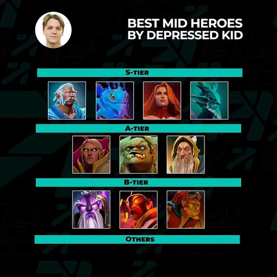 最近掀起了一股英雄强度评级热,职业选手都纷纷开始评选自己心目中特定位置的最佳英雄。One Move战队选手pantomen评选了7.31d最佳辅助英雄,Pari Parni战队选手depressed kid评选了最佳中单英雄: