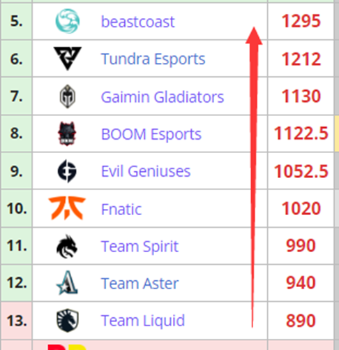 TI直邀可能性分析:Major前8即可稳定直邀,只存在理论可能无法直邀——DPC积分榜上6-13名的8支战队均进前8且Tean Liquid拿到前6。
