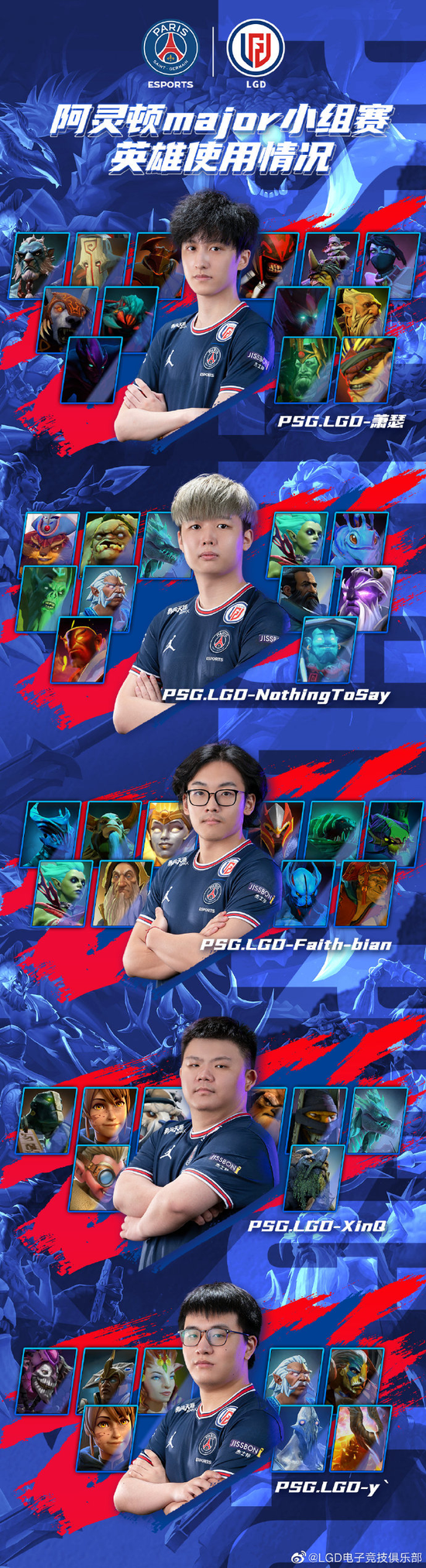 LGD小组赛英雄一览:16场比赛 2022-08-09 23:38 新浪游戏 0 【阿灵顿major小组赛英雄一览】 随着兄弟们提前进入胜者组,今晚将对战第一场淘汰赛,官博为大家汇总了一份小组赛使用英雄一览。 小组赛一共16场比赛,队员们一共使用了46个不同的英雄。 哪个英雄带给大家的印象最深刻呢~