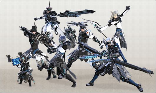 110制作套,4星级配方你值得拥有,FF11的老玩家会发现中间那套重甲是不是很眼熟?没错!75代PLD的神装造型!嗷嗷嗷! 双剑士那套衣服拉拉穿起来真萌!