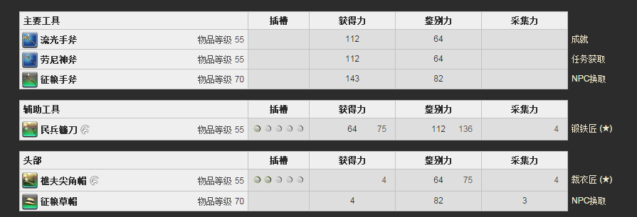 70头会比55HQ制作职业头多 4点获得力 18鉴别力 3点采集力