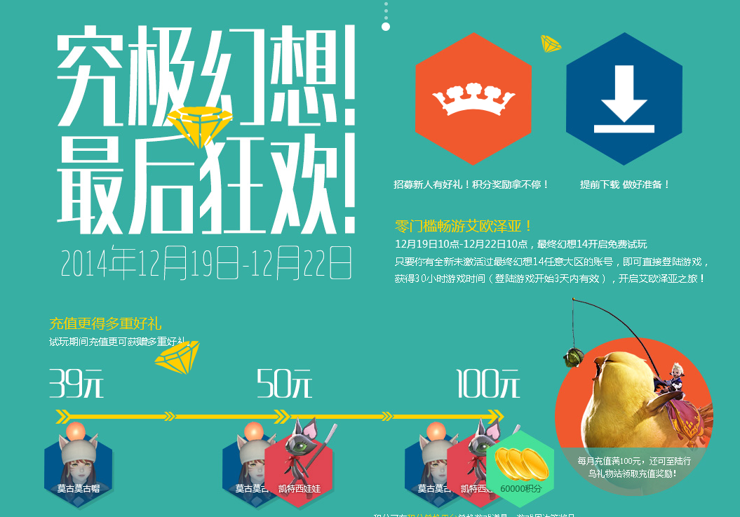 12月19日10点-12月22日10点,2014年人气MMORPG大作最终幻想14限时免费体验即将开启!