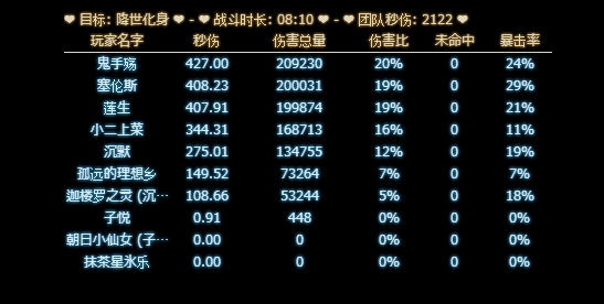 FF14新鲜出炉的诗人DPS数据 2015-03-04 15:21 新浪游戏 0 刚打完本周的CD,虽然又没拿到BIS的头部=。=不过不影响咱们刷数据 负责引线,大小圈,洗脑挨揍,2次魔人歌,1次半管蓝的TP歌,2次爆发药,数据如下: DPS排序——武僧 诗人 黑魔 召唤 龙骑(ST客串)