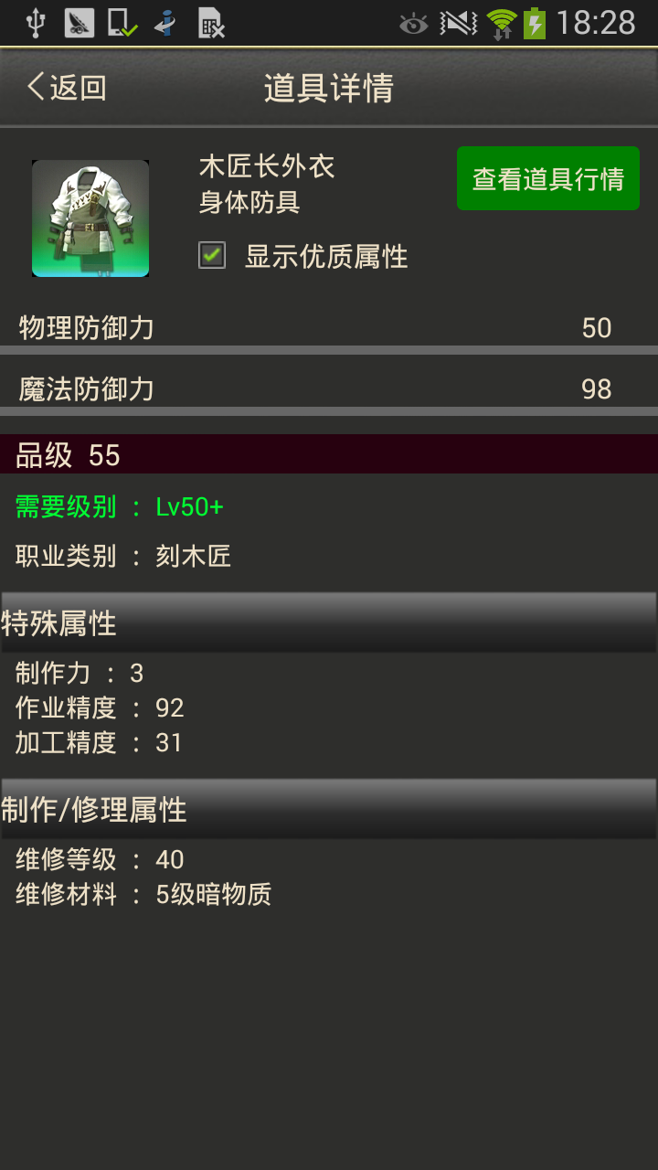 2、点击装备可以直接跳转至道具数据库查询详细属性