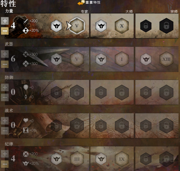超级夜幕(局限于黑夜),嗜血(切地图,死透就得重新叠,副本里很多时候都不打小怪),力量(队伍叠威能弱,方正战士),精确,狂怒空气火焰(一波带走的boss),武勇(稳定的5%伤害),怪物屠戮(局限于某种怪物,一般没人带)。以上任意组合即可。