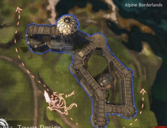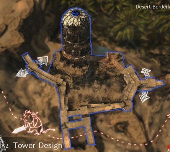 塔的设计目标:当前我方占据着点。但是,敌人可以从任何一面绕着圈进攻。新塔的目的是利用地形,例如两侧山上的一些东西,来防止攻击从某些点位方进攻。