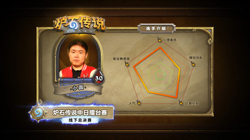 作为老牌的炉石知名选手,小圆的实力毋庸置疑。已经在多个《炉石传说》大型比赛中获得不菲成绩的他,一直被粉丝们尊称为“圆神”。狂野的牌风配合细腻的技术,观看“圆神”的比赛直播总能给人一种赏心悦目的感觉。