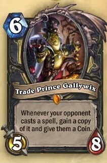 这张卡感觉是目前4张新卡中最靠谱的一张,5攻8血数据感觉比白板食人魔还要叼,就算什么效果都没带也是很多人会考虑的白板随从一只,而考虑到他的效果:当你的对手使用一个法术时,你获得这个法术并给对手一枚硬币。说真的,这个效果非常棒,无数人都渴望吧周卓的效果改为只针对敌方,而盗贼的新卡正是做到了这一点,至于给一个硬币当补偿?这真是地精作风,尤其是考虑到硬币未来可能不算法术之后,就更显得抠门了。