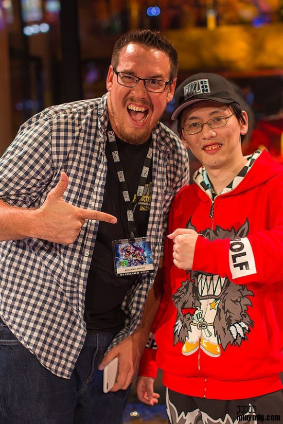 说起来比较奇怪,这次比赛和我交流最多的竟然是2位韩国选手,双方都用着不是母语的英语交流起来似乎更能理解对面在说什么。Kranich私下是以为非 常可爱的选手,但是总是露出阳光般的笑容,整个人给人特别亲切的感觉,Reniehour则是“呆萌”型的代表,当他输给小布之后特别可爱的坐在一个椅子 上,我去安慰他,他也表现的特别无奈和“逗”,反正总而言之,我相信和他们将来也应该能成为很好的朋友,很开心的是据说不久就能在广州的比赛再度见到他 们。台湾选手也是我不久能遇到的选手,其中Frozenice我们很早就在Skype上聊过,然后没有言语障碍自然就更容易交流啦,听到他们一天训练9个 小时的经历让我们觉得也比较惊讶,而Tom60229选手也是给人萌萌酷酷的感觉。虽然这次亚服选手除了Kranich整体都表现得比较差,我觉得还是亚 洲除中国大陆以外地区对炉石重视程度的关系,比赛也比较少,让其他地区选手比较少的得到充分锻炼。不过值得注意的是,这次亚裔选手在嘉年华占据的比例异乎 寻常的高,有12位选手可以说是亚裔,只有4位选手是纯粹的白人选手,所以我相信亚服选手将来也一定会有更好的表现。