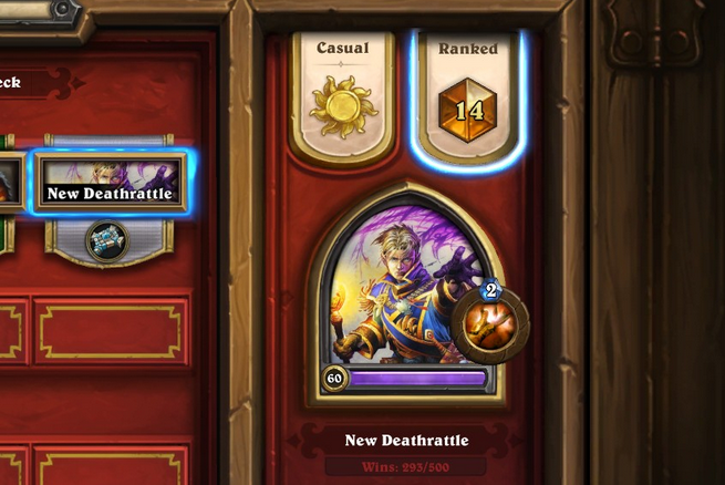 北郡牧师+治疗之环:由于没有带负伤剑圣,治疗之环配合北郡牧师就可以过很多的牌。尤其在打战士的时候,抽牌很关键。