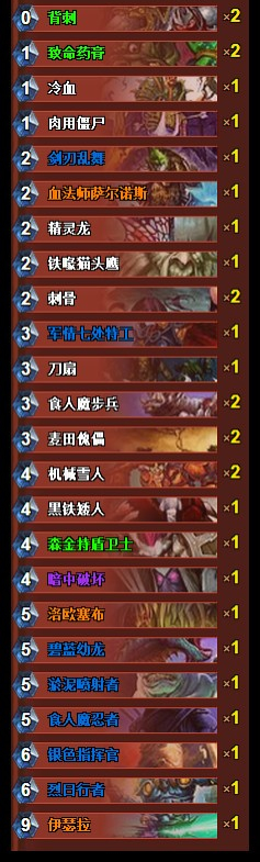 综上所诉,一套好的盗贼卡组在双方都没有过度神抽的情况下应该具备以下条件:
