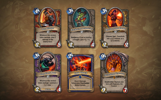 熔火之心总共有着三个BOSS,分别是加尔、迦顿男爵以及管理者埃克所图斯(炎魔之王拉格纳罗斯),击败他们分别可以获得烈焰德鲁伊、黑翼技师以及小鬼首领,完成整个区域更是可以得到管理者埃克所图斯本人的橙卡。另外,战士和萨满的职业试炼也已开启,强大的掷斧者和熔岩震击等着你来解锁。