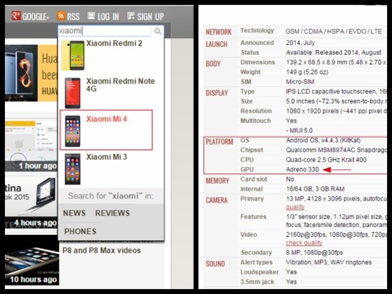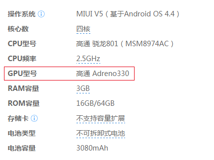 于是,我们知道了小米4使用的是高通系列的 Adreno GPU,那么已确定型号就可以去官网下载页(一定要用电脑打开!)下载指定版本了。