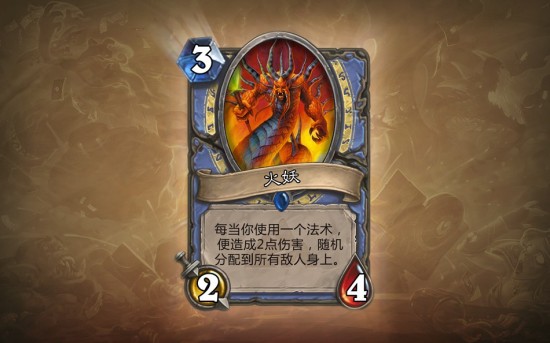 另一方面,大多数法师要选的法术都是移除(不像圣骑士),这意味着我不太确定火妖能力的实际作用(你使用寒冰箭干掉了一个随从而对手没有另一个随从的时候,火妖的伤害就会打到英雄身上,这可以看作是一种浪费)。