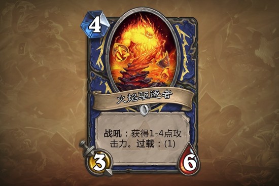现在想像一下有一张牌比它少一费,而且当还有机会得到更多的攻击力。这就是火焰驱逐者。如果这张牌再强一点的话,那它就有可能会打破平衡(在构筑中至少还有王牌猎人来以防万一,但是在竞技场中王牌猎人太少见了)。