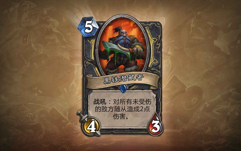 点评:如果你把4/3的身材看作值三费(想想蜘蛛坦克),那么黑铁潜藏者的效果就可以被看作是“两点水晶:背刺所有敌方随从!”