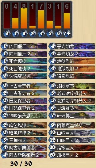 但是我觉得,你要巨人术士玩得好,山岭巨人依然是必须的,因为其他卡牌没伤害,只有4费山岭才能最快速度结束战斗——巨人术士从来就不是一个后期卡组,优势期其实多数就是4-5-6三个回合,这三个回合打不出优势,后面就难玩了。
