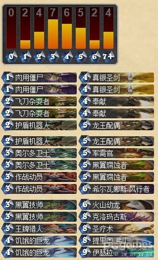 这个卡组是典型的中速卡组,摒弃了生而平等以及狂野炎术师,专注于随从交换控制场面。而卡组中的随从身材非常优秀,在3到6费的曲线上拥有诸如3/5黑翼技师以及火山幼龙、希尔瓦娜斯·风行者等优质随从。而在高费阶段加入的是圣骑士的传统卡牌,克洛玛古斯以及伊瑟拉。