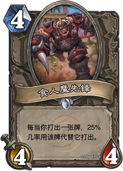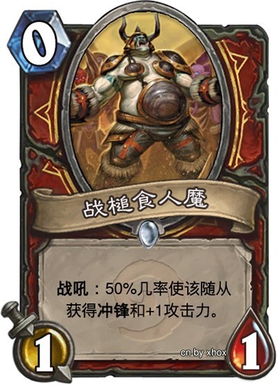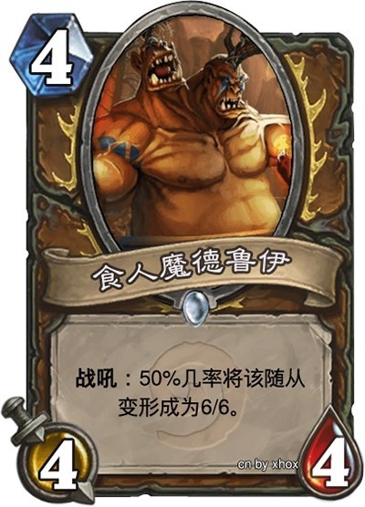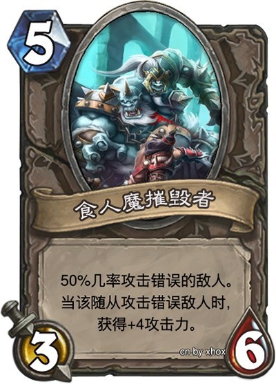 国外炉石传说社区Hearthpwn近期举办了一个炉石传说卡牌的设计大赛,今天为大家带来的是第十四期——食人魔主题。相信这个主题大家应该已经不陌生了,毕竟在去年12月推出地精大战侏儒卡包时,已经有一部分官方食人魔卡牌加入到了游戏中,50%的随机性也是相当的有乐趣。(或者说坑爹?)