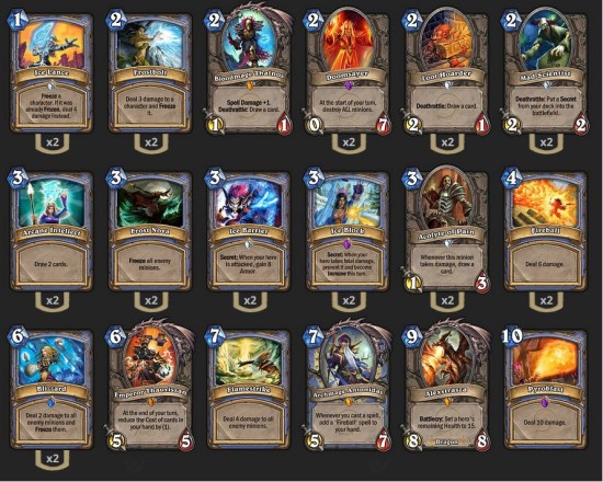 这次我不打算向大家一一介绍其中的关键卡牌了,因为和老版的冰法卡组相比,这套卡组的用法并没有明显的变化,但是我希望向大家介绍一下三个比较常见的对手。