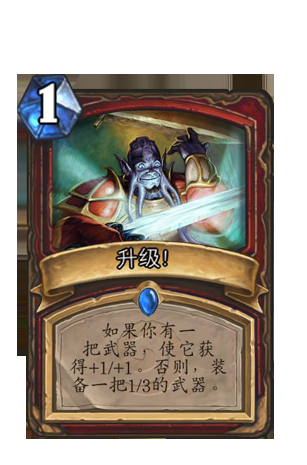 升级!—— 如果你有一把武器,使它获得+1/+1。否则,装备一把1/3的武器。 |