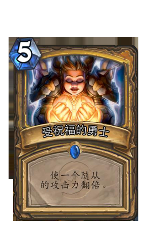 上一轮剩余随从 + 力量祝福 + 王者祝福 + 受祝福的勇士 10耗的比赛终结拳,可以让的1/1小兵变成16点攻击的怪物,更不要提其他随从了。 当然这种梦幻连击比较难遇到,建议分开使用,例如力量祝福 + 王者祝福或者王者祝福 + 受祝福的勇士或者力量祝福 + 受祝福的勇士。 |