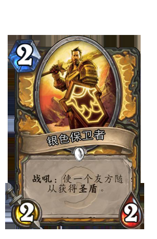 开场强力连招,在第二轮,或者后手第一轮使用硬币,英雄技能召唤的1/1的小兵,在召唤后的下一轮使用力量祝福和保护之手或银色保卫者,会给对手带来极大的困扰。 当然遇到法师、小德以及盗贼不推荐使用。 |