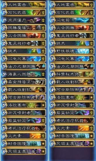 在茫茫多的快攻面前,我更愿意让我的中速卡组变得更有针对性,拿现在天梯的隐藏职业萨满来举例,下面是我在TGT前后使用的两套控制萨牌表