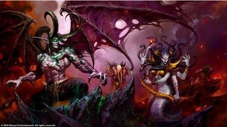 2005年的画作,图中分别是伊利丹头目与瓦斯琪,在后来的《魔兽争霸3》当中模型有改动。