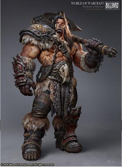 2014年,暴雪为《魔兽世界》推出了第五部‘德拉诺之王’资料片,上图是王炜创作的兽族传奇英雄-格罗姆·地狱咆哮。