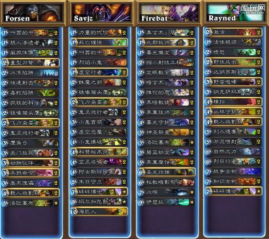 下面将放上四人的最终卡组,基本上都是一些固定套路的不完美版,Forsen的猎人作为冲分小霸王无悬念的拿了冠军: