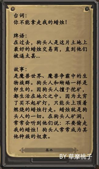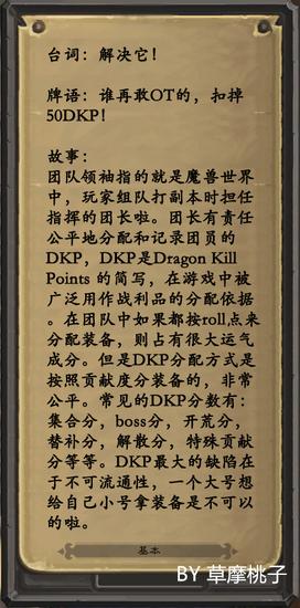 每张卡基本上都会按照:台词(登场语音)+牌语(牌库中右键单击卡牌弹出的介绍)+故事(卡牌在魔兽世界中的角色)这个顺序介绍。桃子还特地去游戏里一一截图给大家看哦,希望大家印象深刻啦!