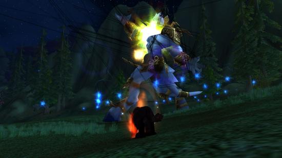 这就是奥格瑞玛城门外游荡的野猪。 远处可见玩家们正在乐此不疲的决斗着!