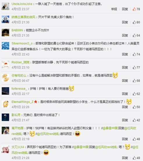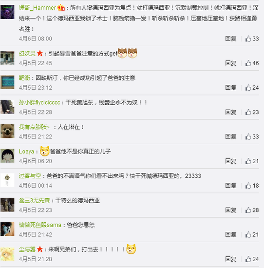 然后这条微博又一次引发玩家的疯狂评论,可想而知,评论的内容基本上都是“先干死喊德玛西亚的。”