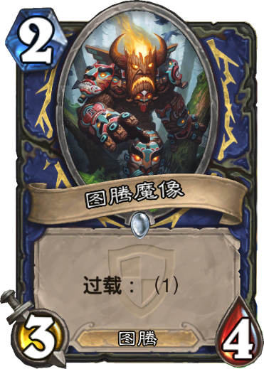 2费34,远高于同费用的其他卡,没有一个萨满不带这张卡。虽然过载1点,但这个超模的身材却对可以接受。而且可以配合坑道穴居人。理想状态是1费穴居人、2费图腾魔像,这个组合可以说是当前最强的前期组合之一。