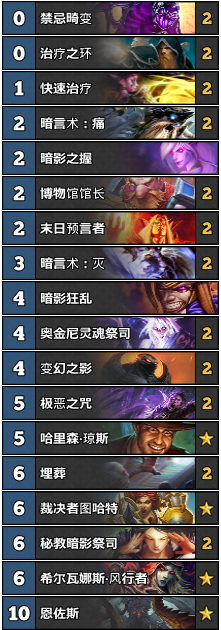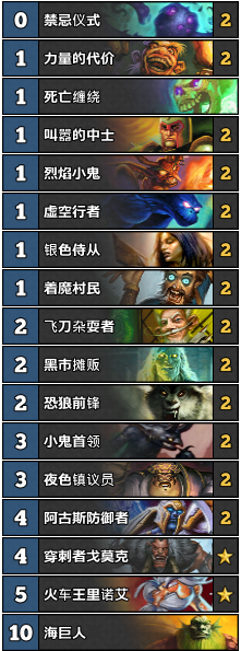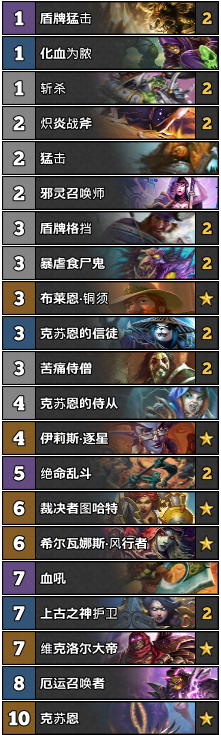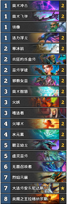 打出高额爆发的套牌,无面投火者和毁灭之锤的疯狂输出给了打脸萨赢下游戏的力量。打脸萨仍然雄踞本周T1行列的第一,是非常值得推荐使用的套牌,套牌中那些 强力近乎超模的卡牌意味着它能够战胜任何套牌,甚至能打败那些专门康特它而存在的套牌。打脸萨给予敌人很强的压迫感,也能够有效对抗那些更需要操作的奇迹 贼和冰法套牌。