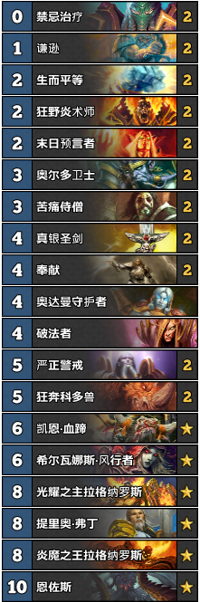 T2:奴隶战、动物园、恩佐斯牧、节奏法、中速猎、蓝龙贼、雷诺术、防战、冰法
