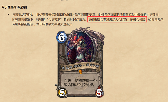 关于炉石新版本的蛛丝马迹 2017-02-17 15:43 新浪游戏 0 1。我们很快会推出激动人心的新亡语核心卡牌(恩佐斯或赢?) 2。无法制作强大的法术伤害卡牌,以及任何可以让你复制卡牌的设计(类似菊花茶?) 3。炉石从本质上来说应该是一款出牌与反制的游戏
