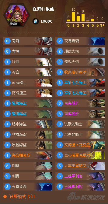在加基森版本发布的初期,帕奇斯问世的时候,就有夜幕奇袭刷帕奇斯之后配合船载火炮的“打炮贼”的构筑,如果没记错应该还进过逗鱼。今天推荐的这套“狂打野炮贼”……额,是“狂野打炮贼”在构筑上投入了更多海盗,这样即便在没有夜幕奇袭的情况下,大量海盗配合火炮也能一战——嗯,我的火炮早已饥渴难耐。